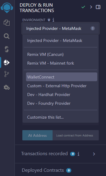 π Select "Injected Web3 Metamask" or "Wallet Connect" from the "Environment" dropdown.