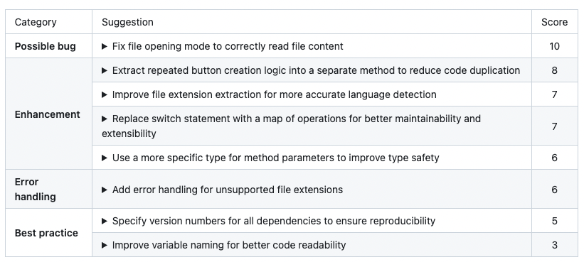 - The suggestions will focus more on identifying and fixing code problems, rather than style considerations like best practices, maintainability, or readability.