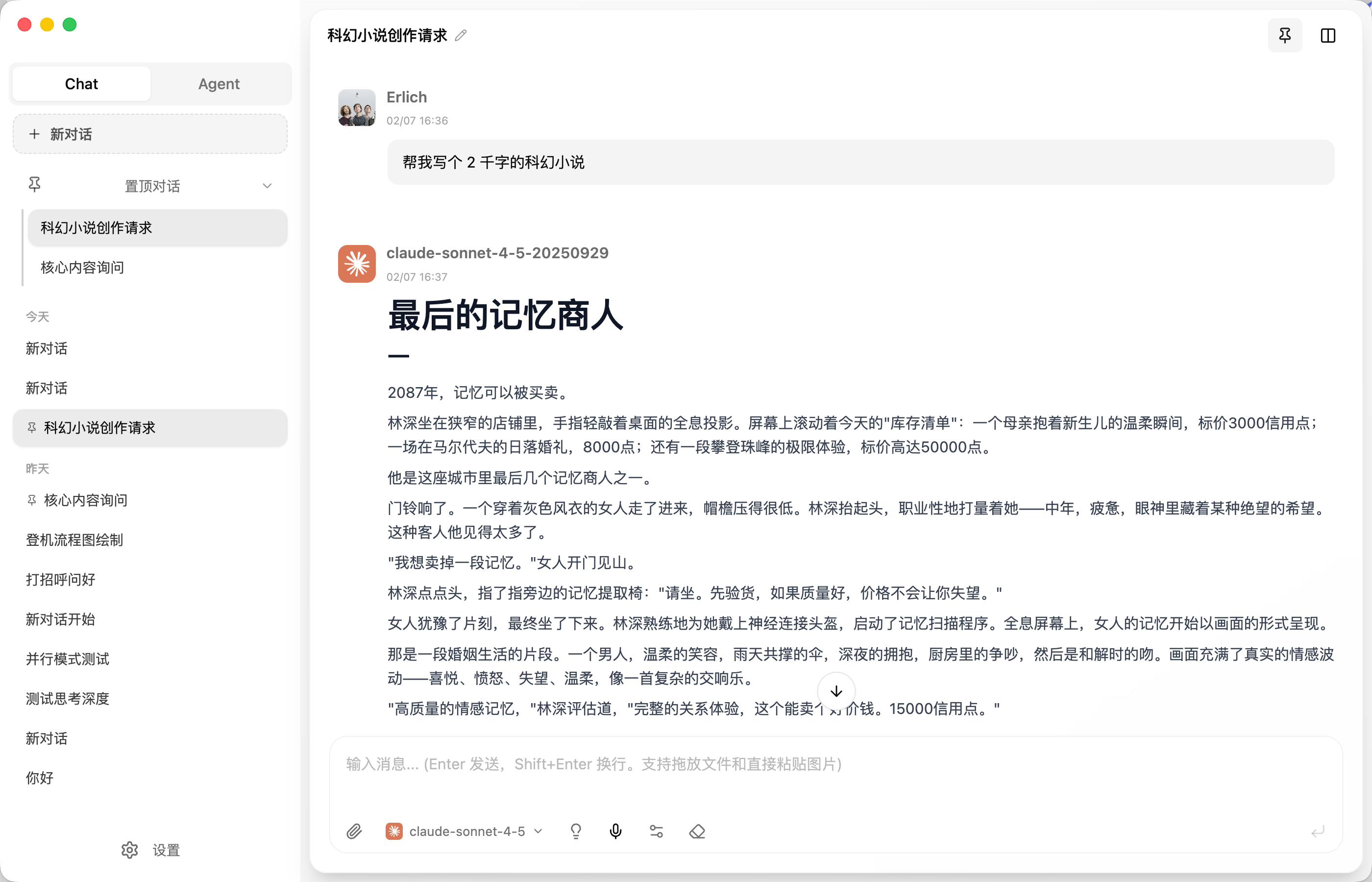 Proma 的聊天模式,支持多模型切换,支持附加文件对话。