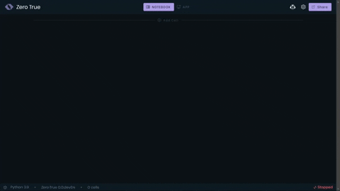 Zero-True is a Python and SQL reactive computational notebook able to create beautiful and professional data-driven applications. Designed to foster collaboration and improve data accessibility, it offers a rich UI library and an intelligent code parser. Publish your apps with confidence and with ease.