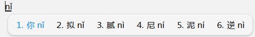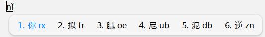 实际上我们同时支持,两分:你(ni`rfer,ni`re)、多分:莫(mu`ckrida)、笔画:你ni`pspzhpd