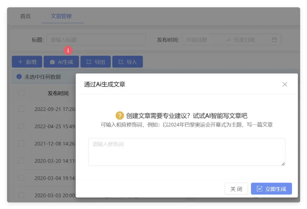- 入门指南: 快速入门 | 代码生成使用 | 开发文档 | AI应用手册 | 视频教程