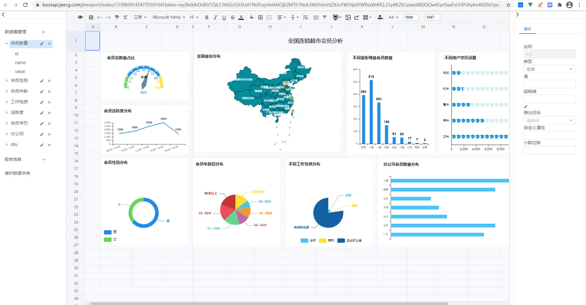 - 6.提供强大的报表和大屏可视化工具,支持丰富的数据源连接,能够通过拖拉拽方式快速制作报表、大屏和门户设计;支持多种图表类型:柱形图、折线图、散点图、饼图、环形图、面积图、漏斗图、进度图、仪表盘、雷达图、地图等。