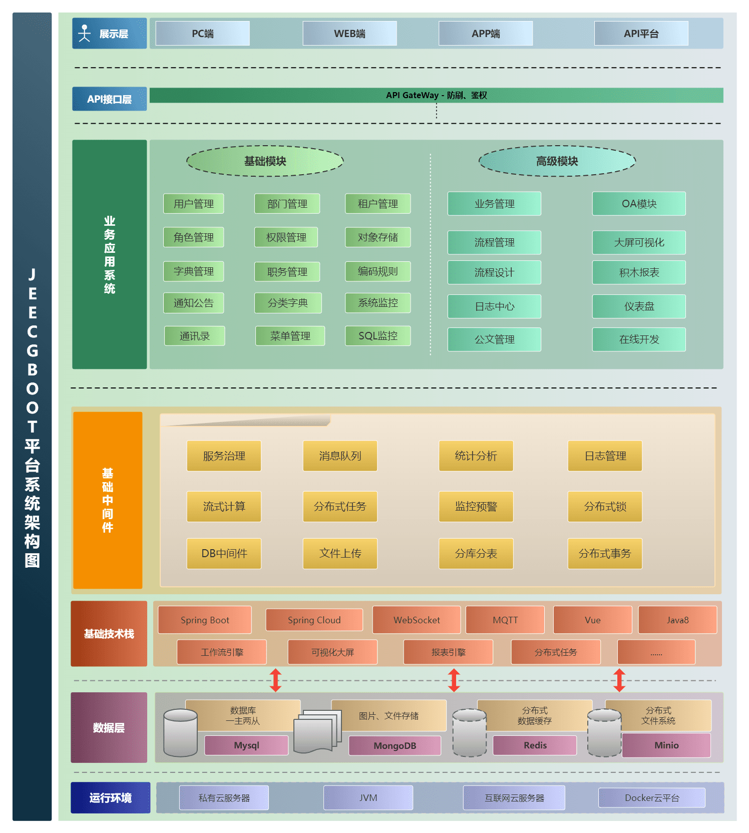 JeecgBoot低代码平台兼容所有J2EE项目开发,支持信创国产化,特别适用于SAAS、企业信息管理系统(MIS)、内部办公系统(OA)、企业资源计划系统(ERP)、客户关系管理系统(CRM)及AI知识库等场景。其半智能手工Merge开发模式,可显著提升70%以上的开发效率,极大降低开发成本。同时,JeecgBoot还是一款全栈式AI开发平台,助力企业快速构建和部署个性化AI应用。。