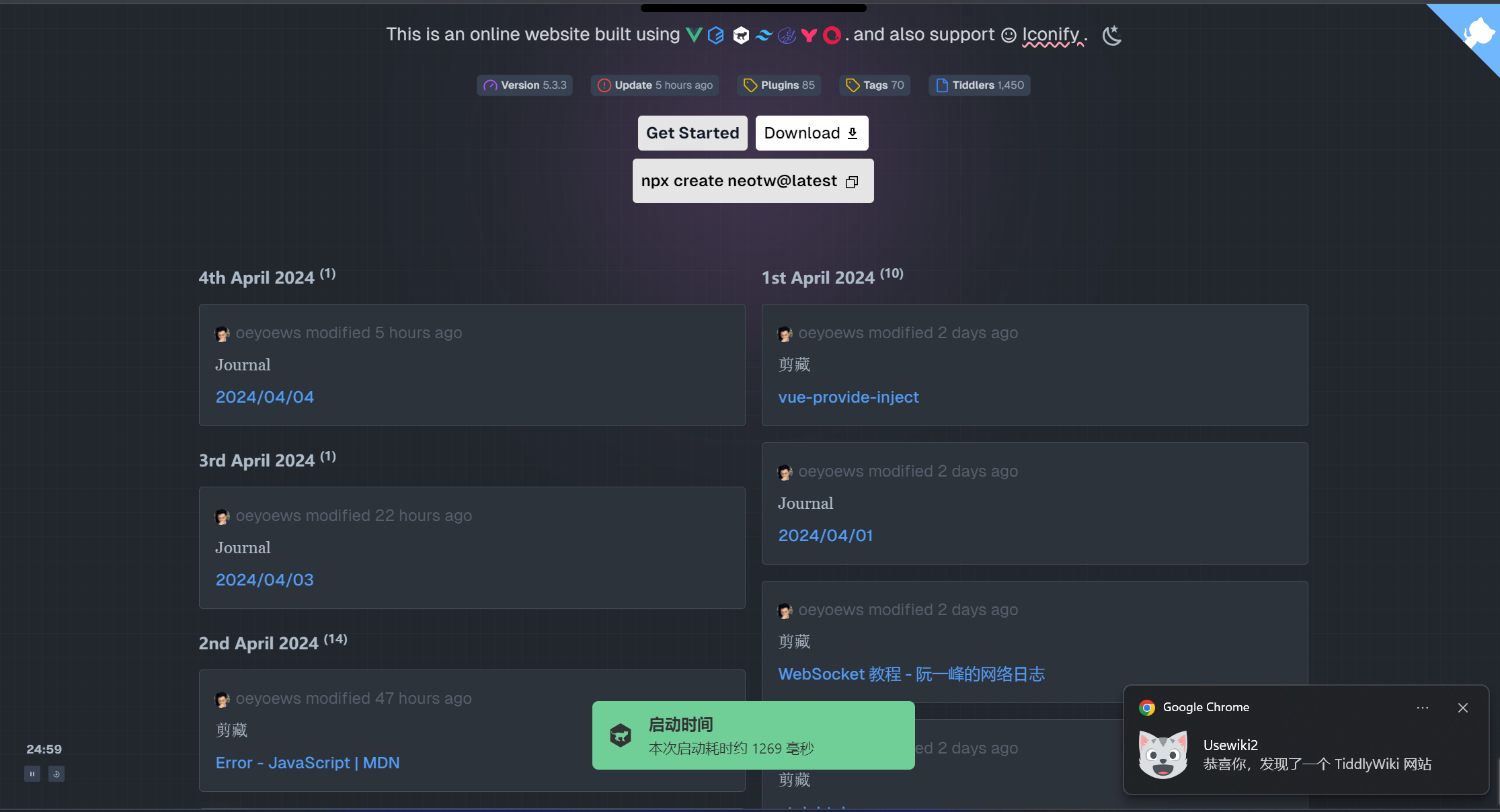 - 💡 One-click installation: Quickly install the TiddlyWiki Starter Kit using the npm create create-neotw-app command.