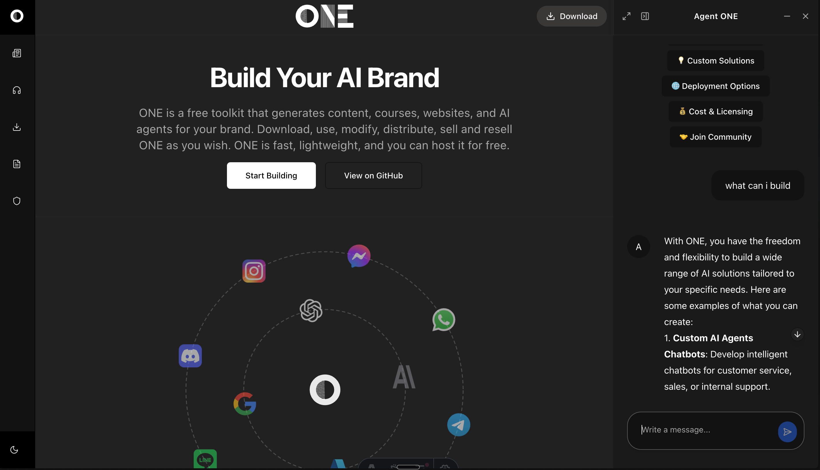 ONE is a modern web and AI agent development toolkit that combines the blazing-fast performance of Astro with the elegant components of Shadcn/UI. This enterprise-class starter kit empowers developers to build AI-powered applications with: