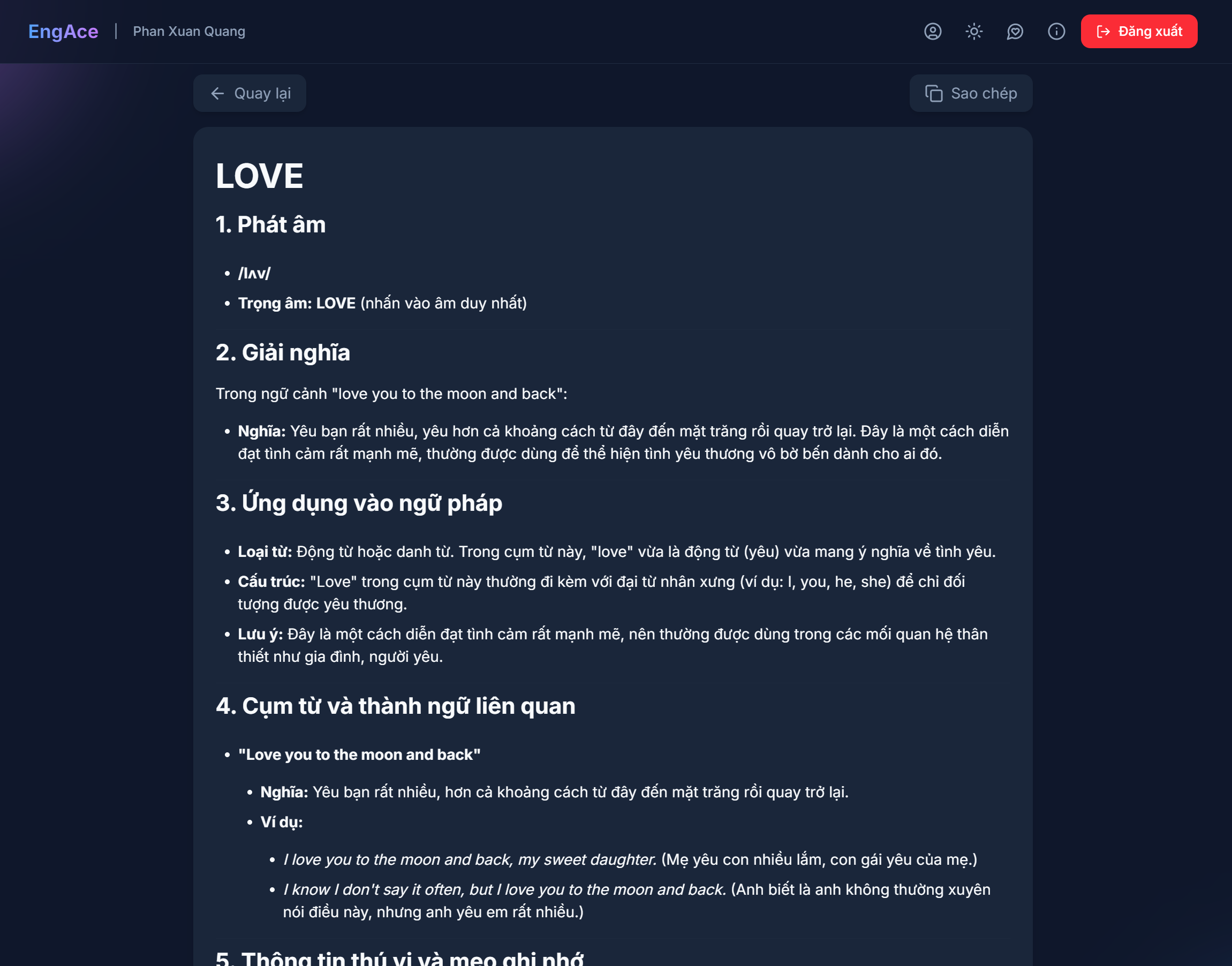 EngAce is a cutting-edge, generative AI-powered application designed to revolutionize the way Vietnamese learn English. This app provides a personalized learning experience tailored to each user's unique needs and preferences. EngAce combines the power of artificial intelligence with a comprehensive set of features to create an engaging and effective English learning environment. This repository contains the full source code, documentation, and resources for the EngAce app.