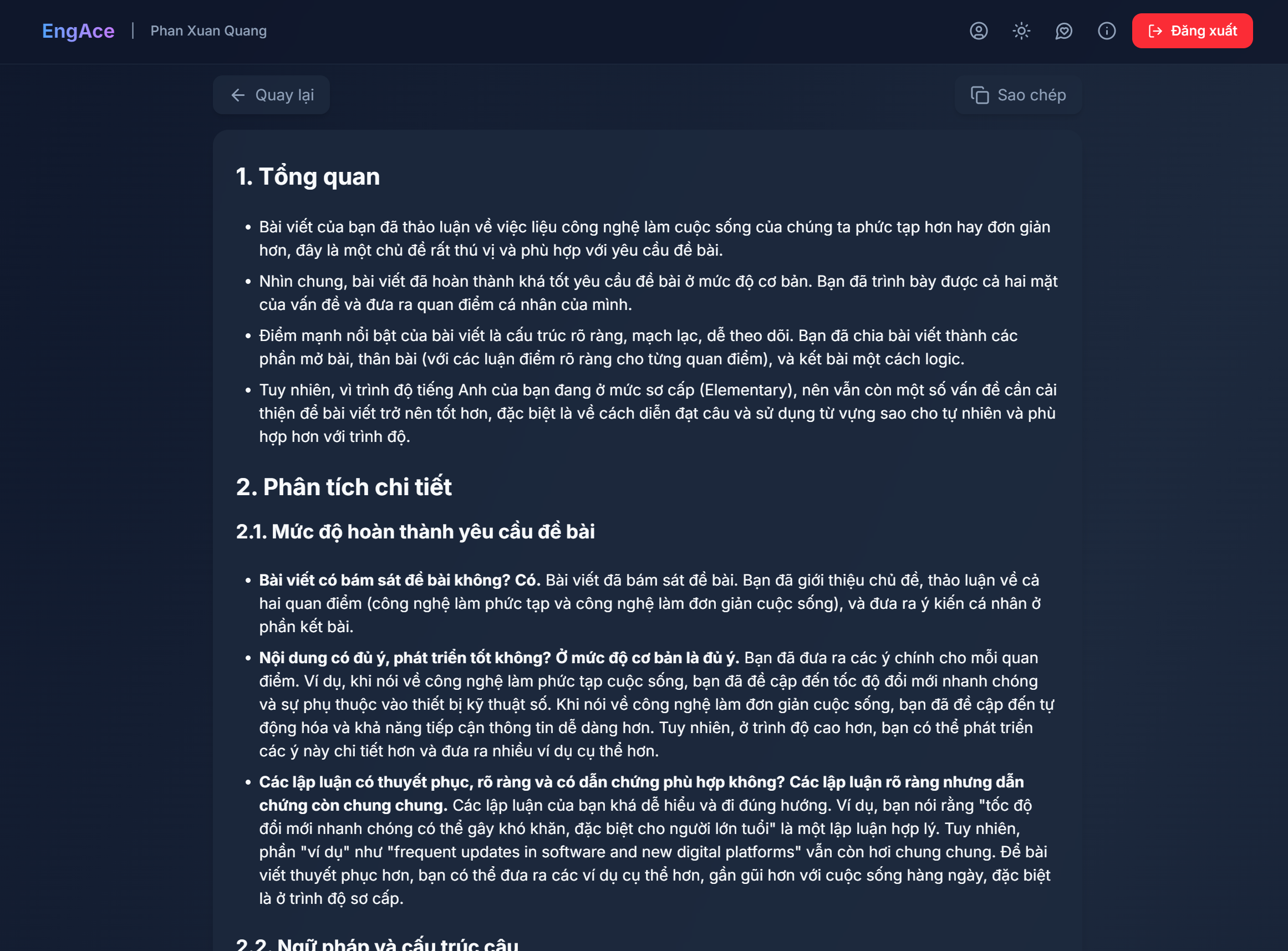 - Improvement Suggestions: The AI provides constructive suggestions to help users refine and improve their writing.
