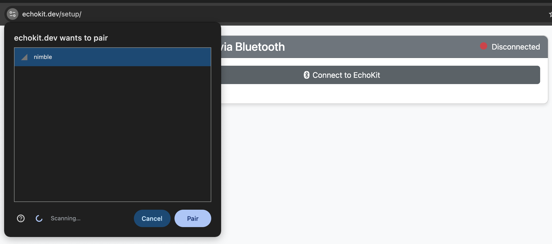 Go to web page: https://echokit.dev/setup/  and use Bluetooth to connect to the GAIA ESP332 device.