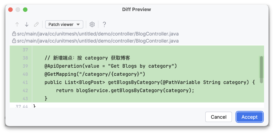 - Custom specification of prompt. For example, Controller, Service, Repository, Model, etc.